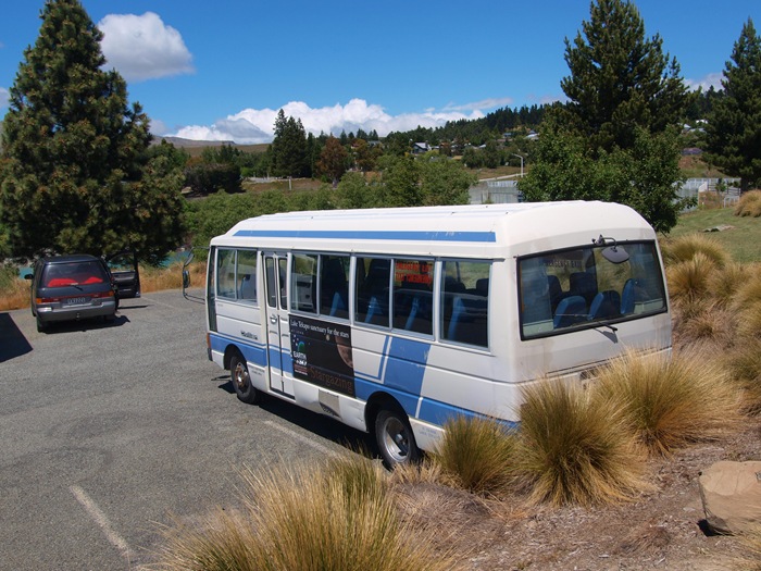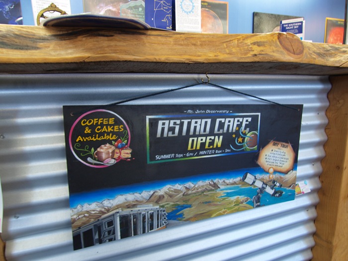 而我的目的地除了旅客服務中心外,還有就是隔壁的Earth & Sky星空之旅中心。蒂卡波湖是一個高山湖,有海拔七百公尺高,且一年之中大多數的日子都是晴天,也因此變成了南半球最佳的觀星場所之一。湖邊的Mt. John約翰山約海拔一千公尺高,也是各式天文望遠鏡坐落之處。蒂卡波的賣點除了美麗的湖泊外,就是璀璨的星空。每天晚上,都有巴士載你到Mt. John山頂天文台所在處,由專人導覽並認識星空,還能從巨型天文望遠鏡觀看星星等。當然這行程不是免費的,兩個小時的星空之旅花費大約要100紐幣(台幣兩千多)。但我這次就是衝著蒂卡波湖的星空而來的,自然的卡就給他刷下去。(痛是之後的事:P)