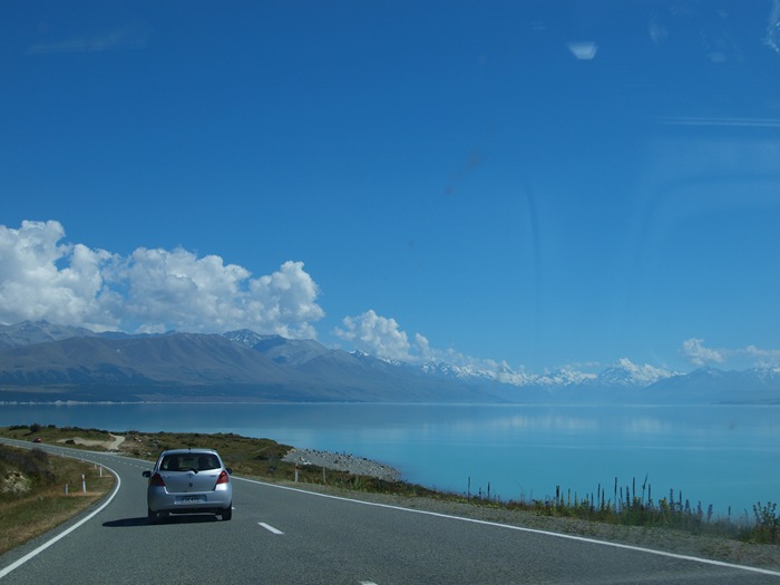 沿著八號公路,會經過Pukaki湖,而遠方的雪山就是南島有名的庫克山脈Mt. Cook。我們也在此作短暫停留,並拍照留念。