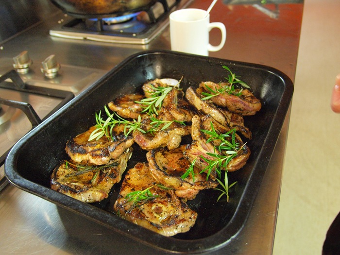 大火快速煎過鎖住肉汁後,再放入預熱過的烤箱烤一陣子即可。